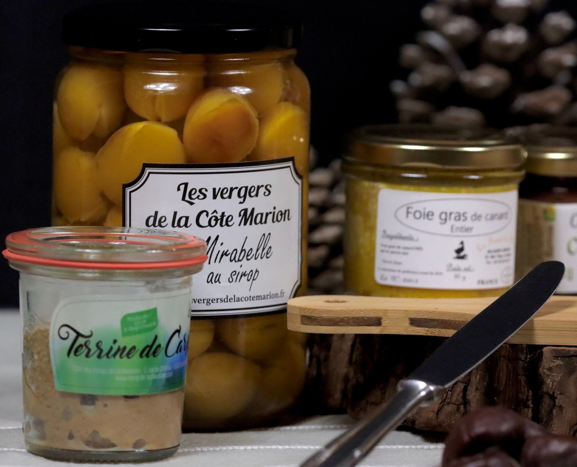 - D'une terrine de Foie gras de canard de 90g de La Ferme de Tilloy et Bellay. (Marne)